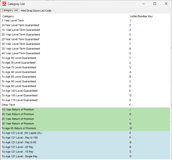 In this case, we are looking at 10 year term, and so the ?.dis file would be 3.dis, 3 being the value for the 10 year category. Here is the list of categories that you can obtain from the “Manage Product Database.”